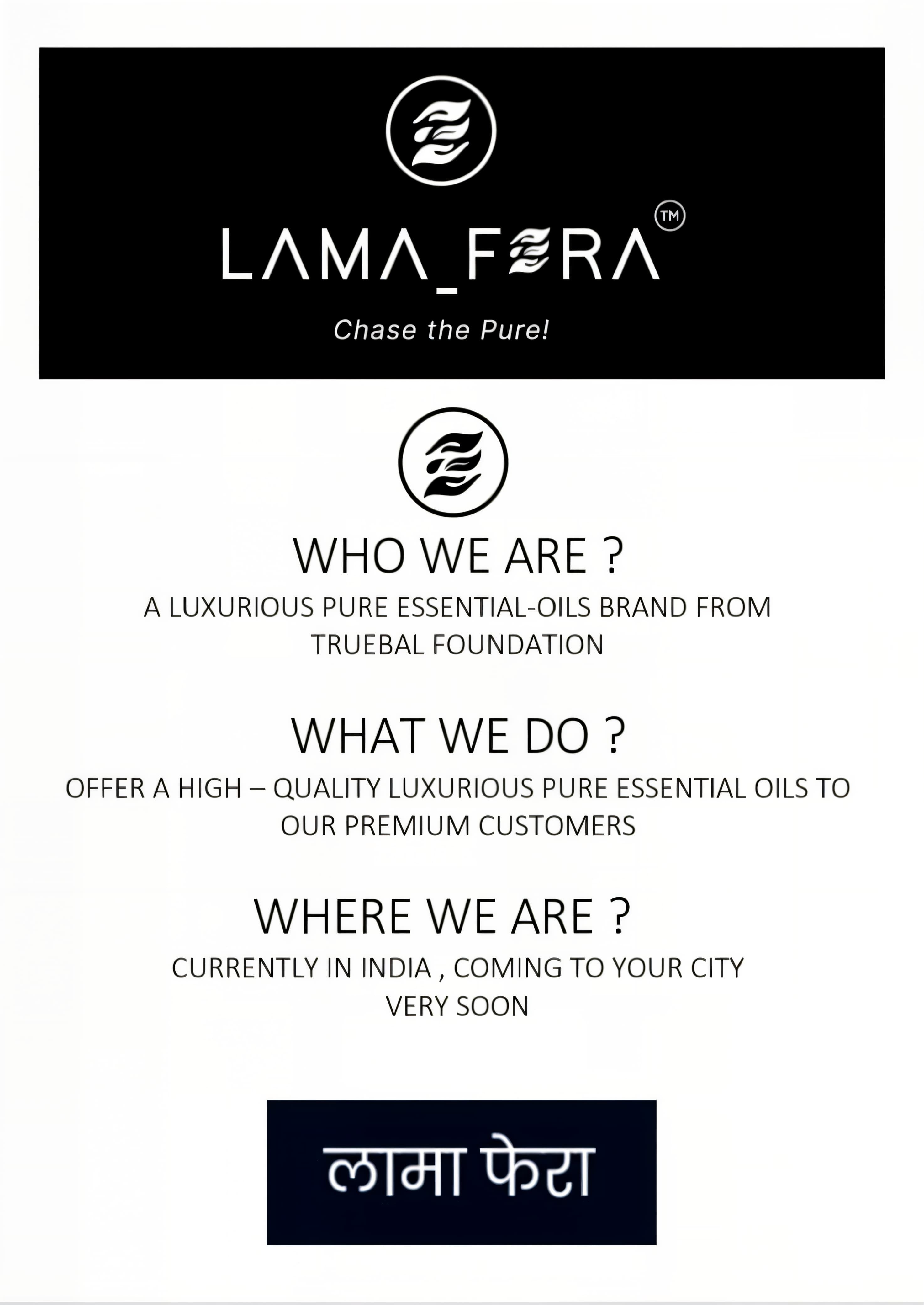 LAMA_FERA™ harmonizes mind and body through potent essential oils. We source nature's finest extracts to empower your journey to holistic wellbeing.